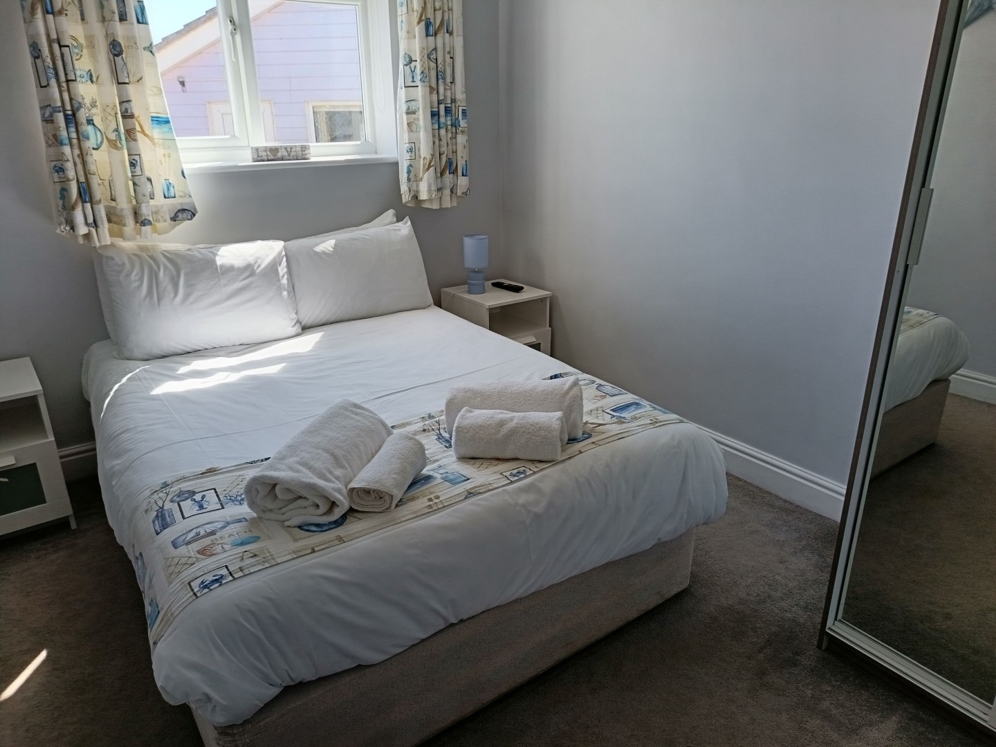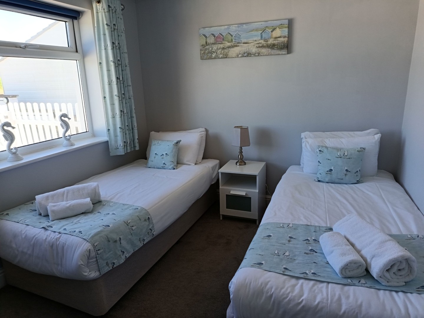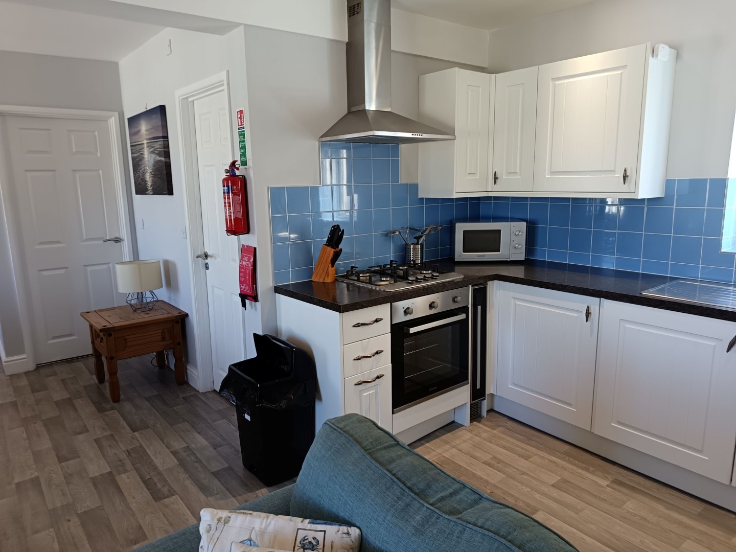 When you approach the front door you will notice there is a bright porch area to take off shoes and coats, after enjoying the coastal walks that are 2 minutes from your doorstep. From the porch you enter the bungalow itself and immediately notice how open plan and roomy it feels. To the left you have your free standing dining room table and chairs and to the right you have your lounge area with 2 sofas, TV and coffee table. Throughout this bungalow you will also get a great feel that you are close to the seaside as the colours are bright and in pastel colours. The kitchen is really well equipped with everything you could wish for fridge freezer, washing machine, dishwasher, oven and grill.