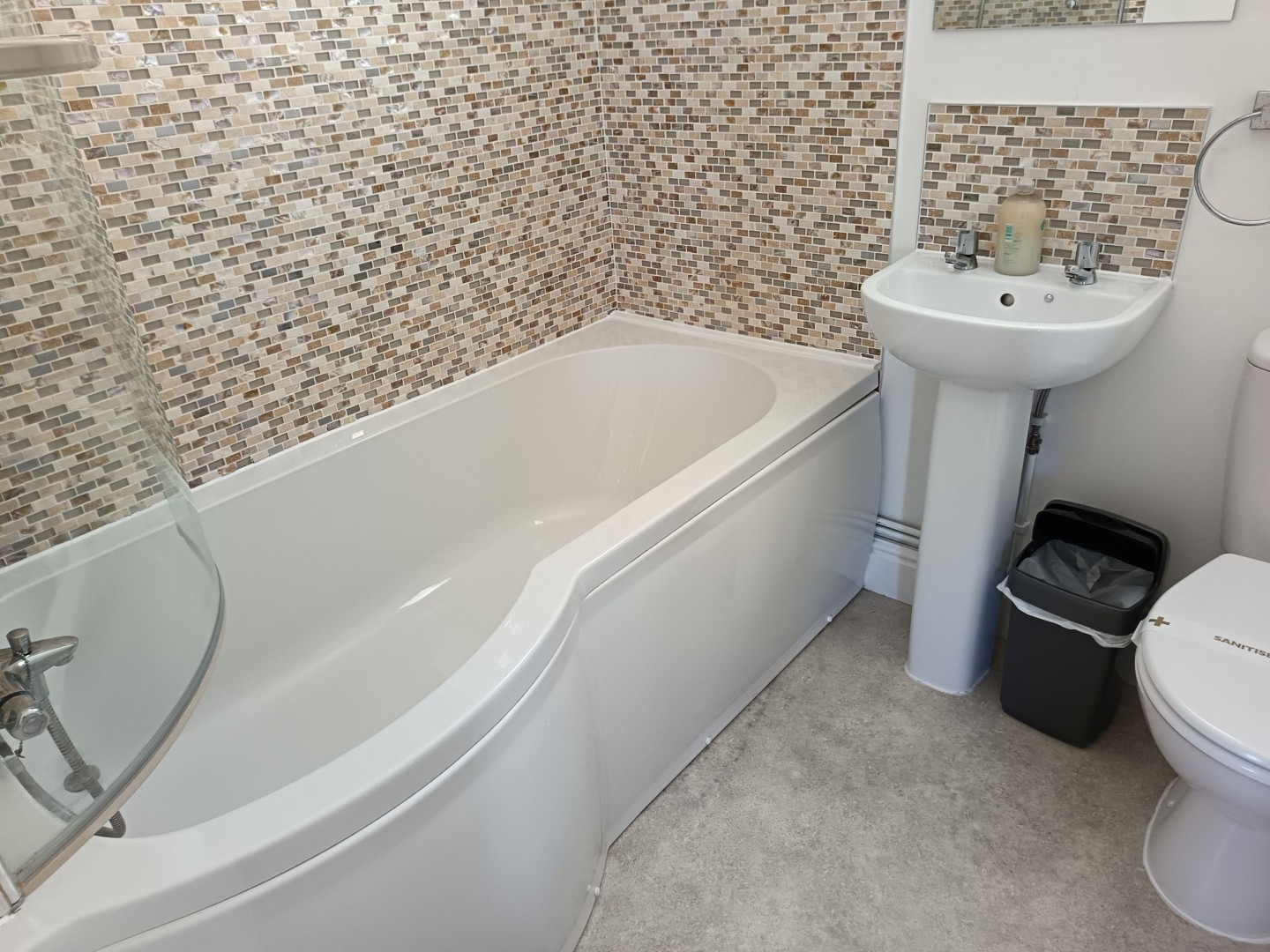 To the rear of the property there are 2 very spacious bedrooms, separate toilet and family bathroom. Both the bedrooms have loads of storage and the beds in the spare room are both adult sized the same as the large double bed in the master bedroom. The family bathroom has a bath, shower, toilet and basin .
